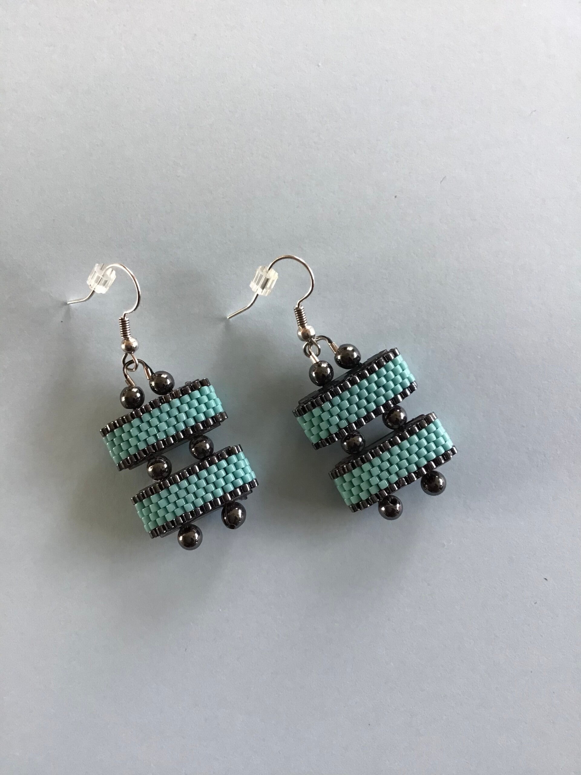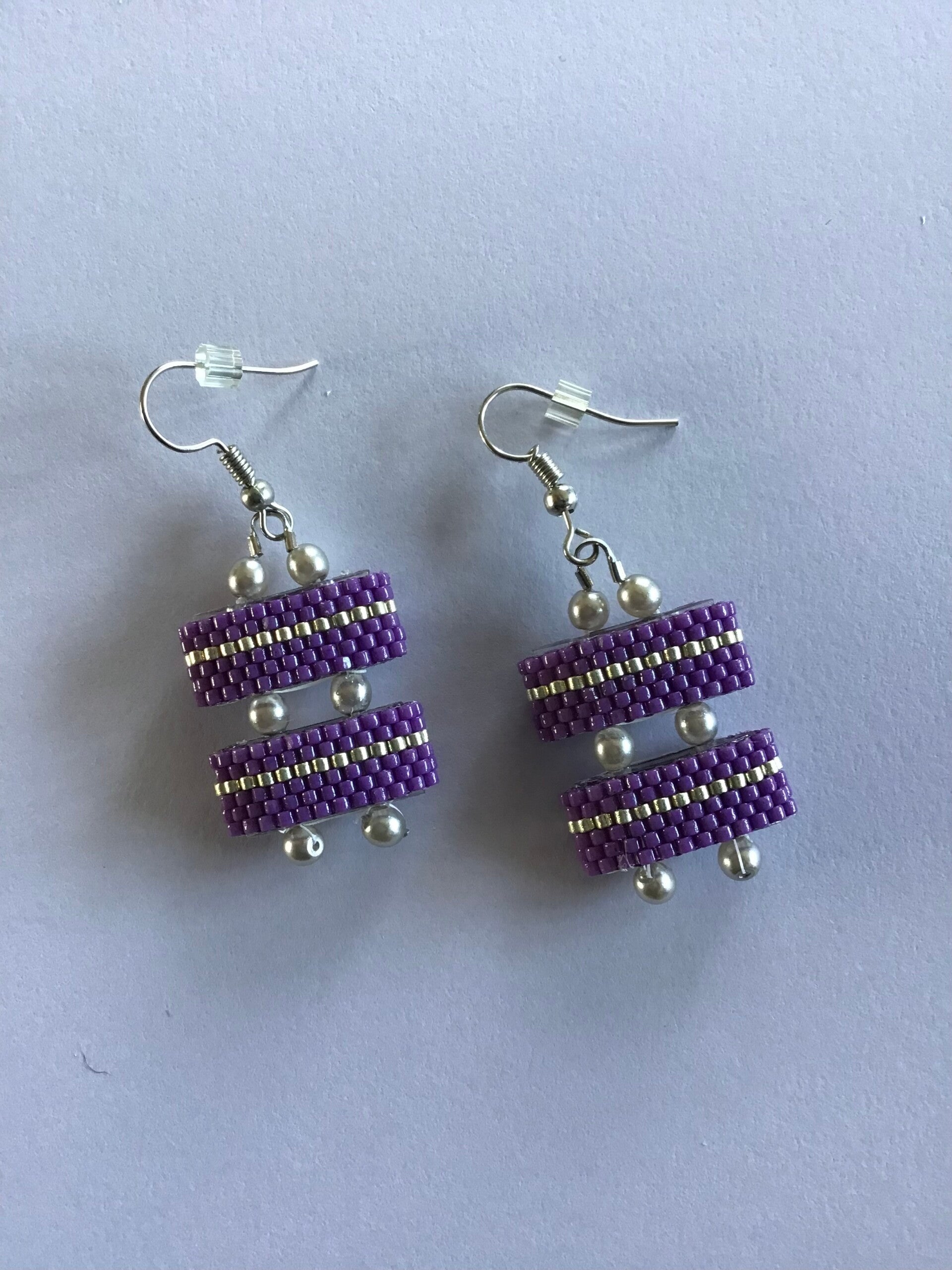 De kralen van oorbel Sophia zijn handgemaakt van kleine glaskralen buisjes en vastgezet op een stevige ondergrond. De oorbel is afgemaakt met glasparels in een bijpassende kleur.