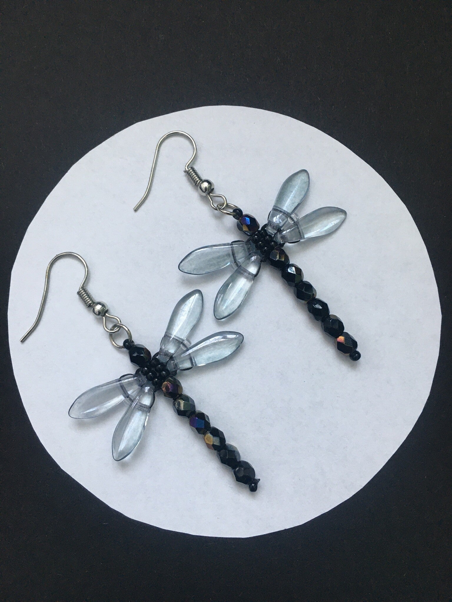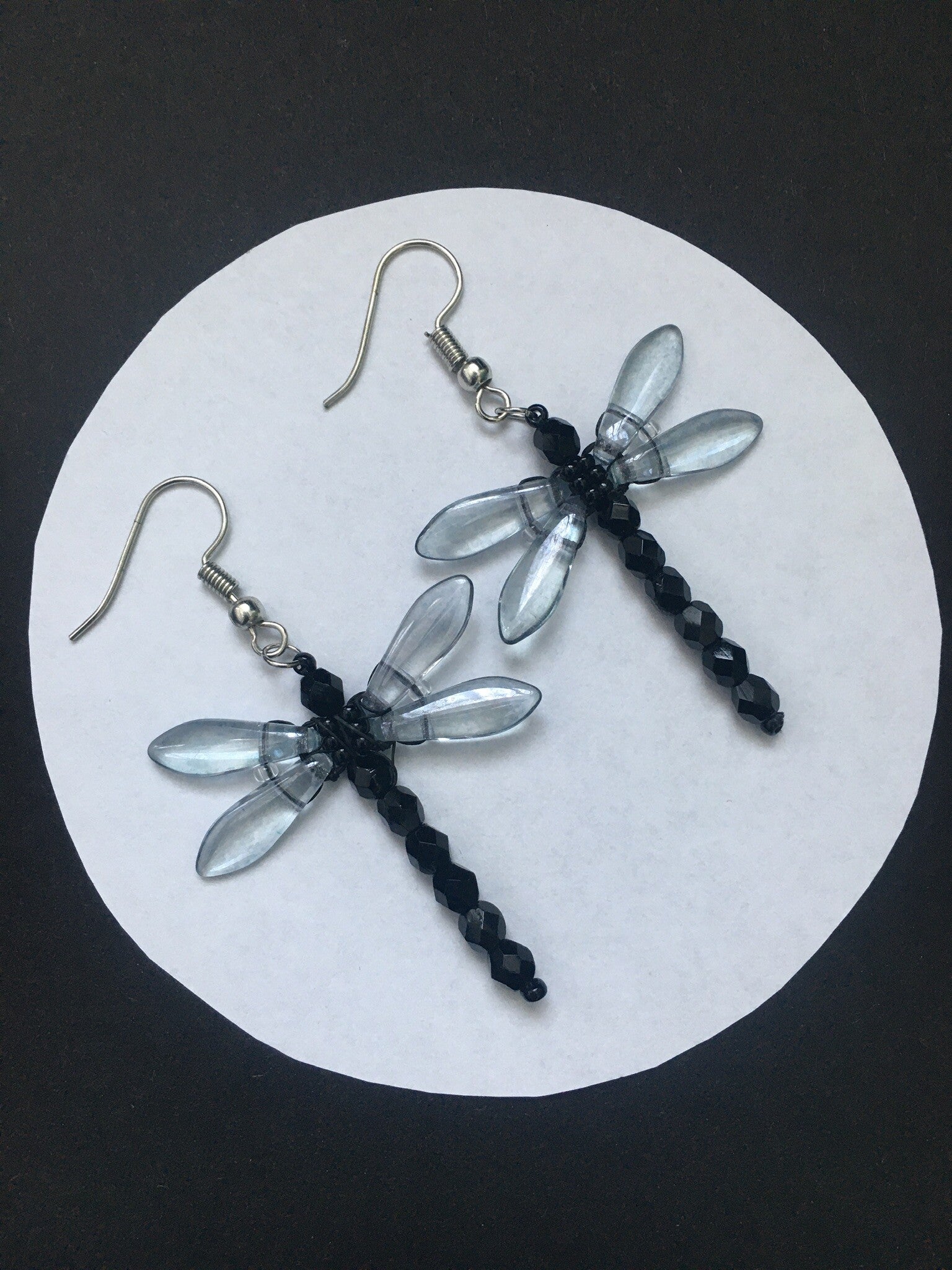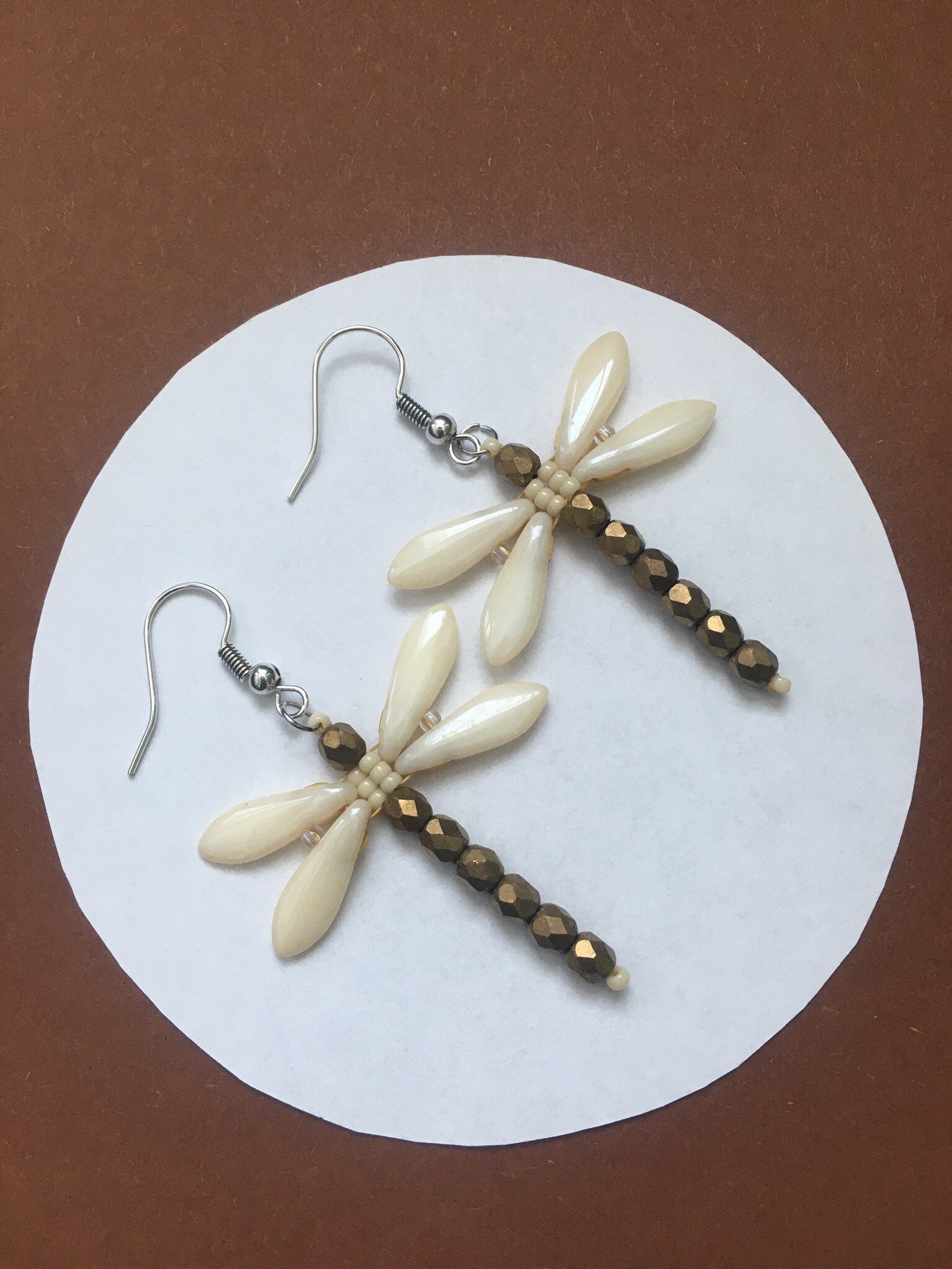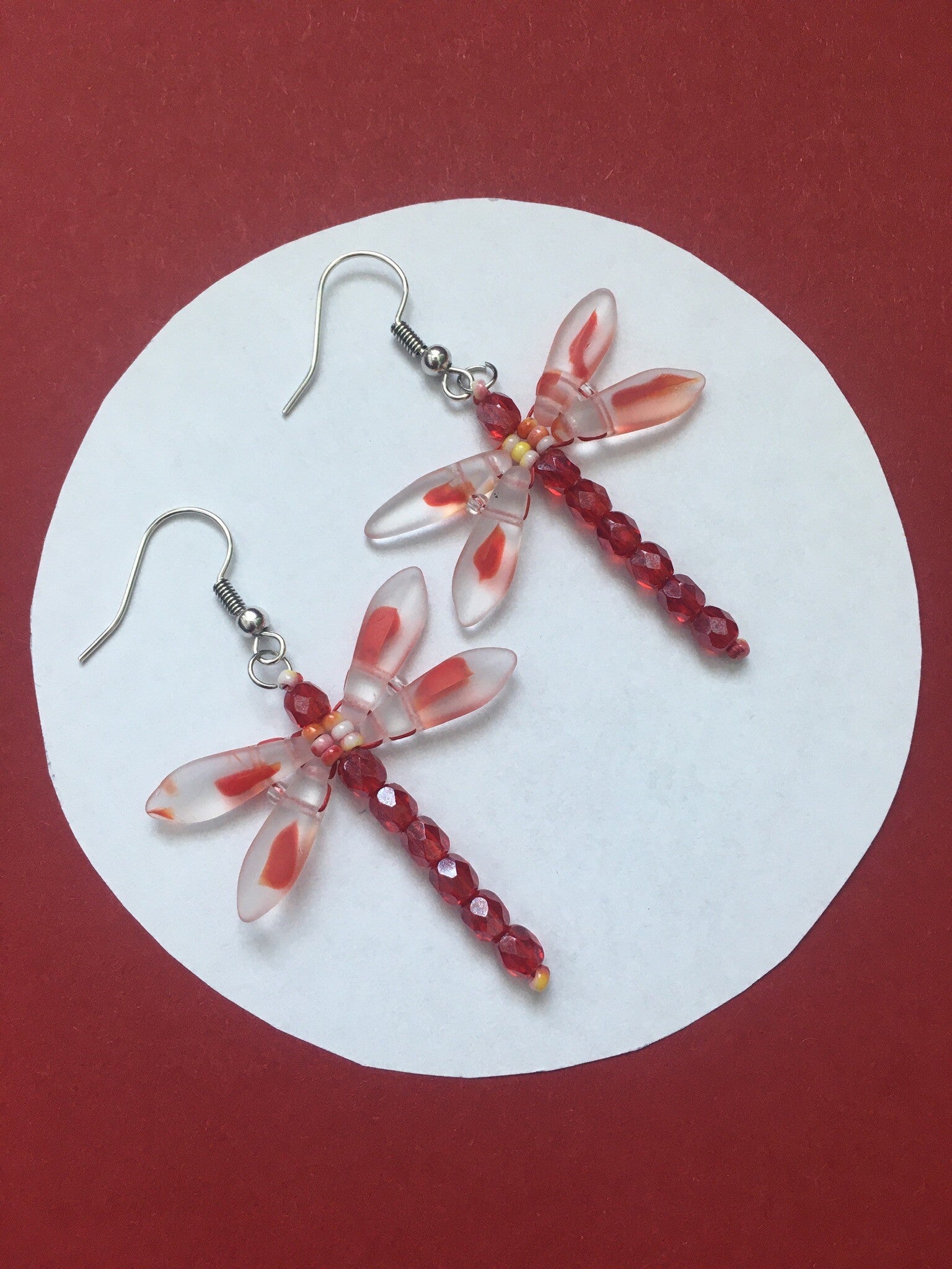 Handgemaakte oorbellen van verschillende soorten glaskralen in de vorm van een libelle in 13 prachtige kleuren