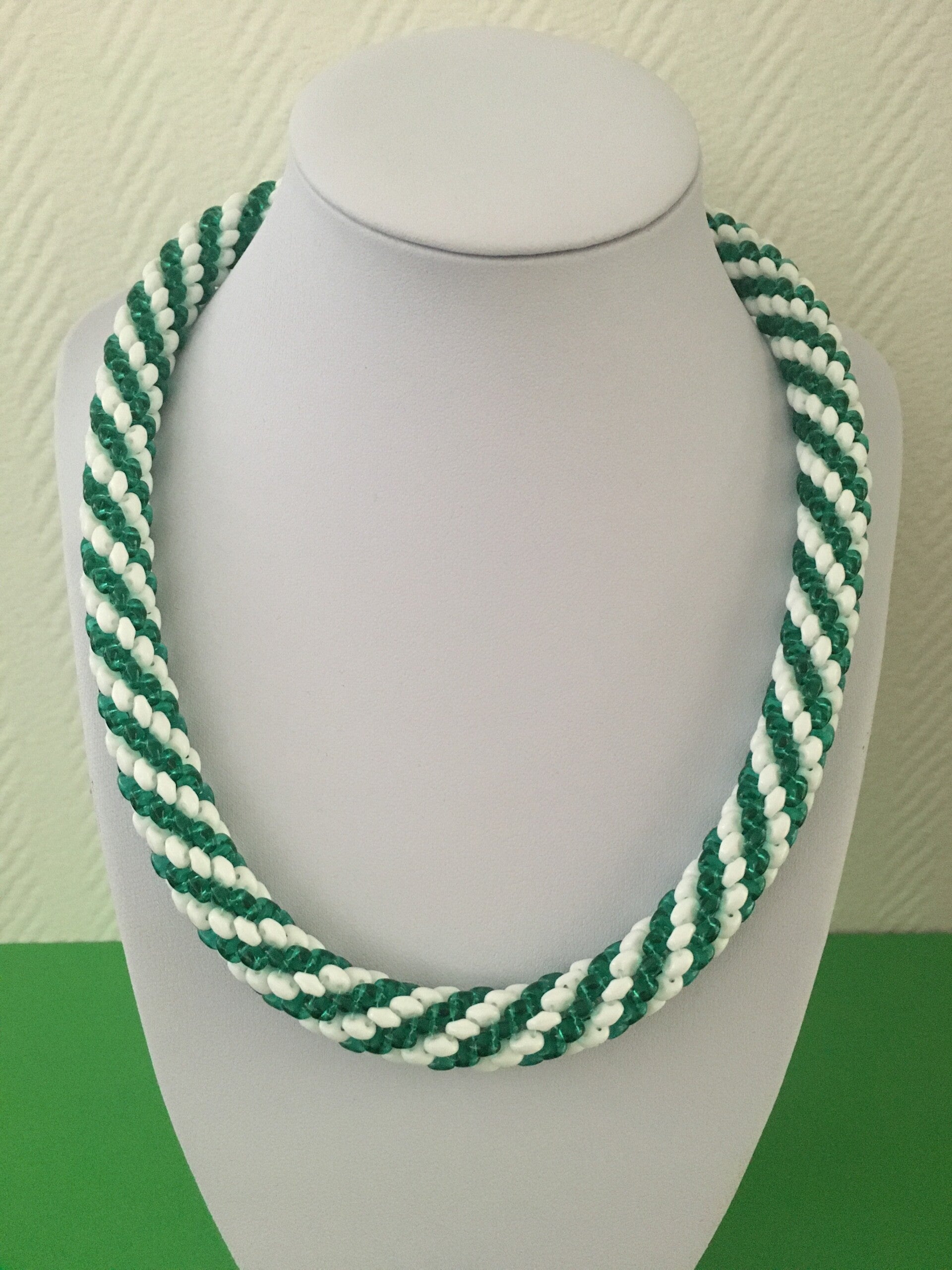 Handgemaakte ketting geheel bestaand uit glaskralen.