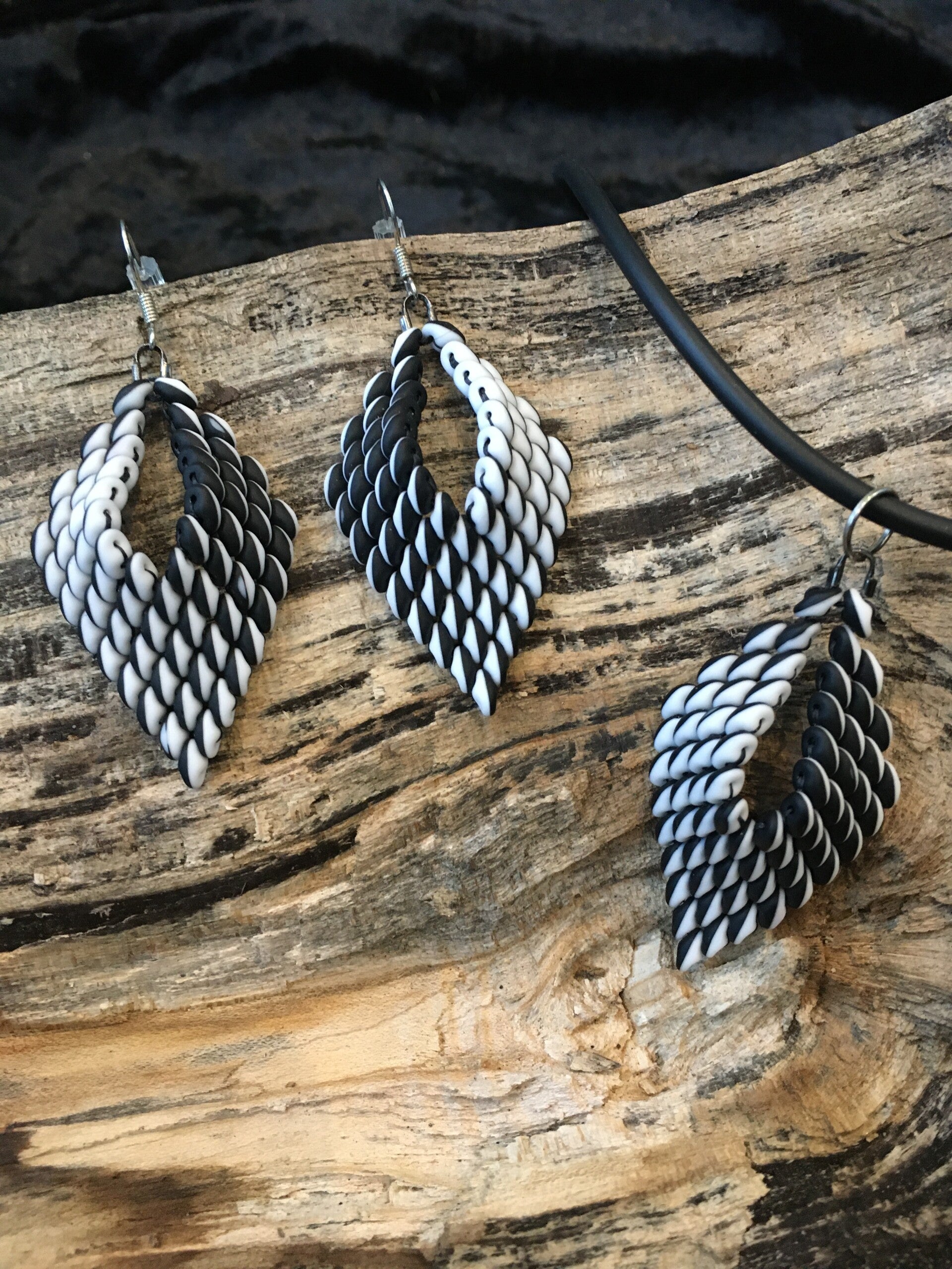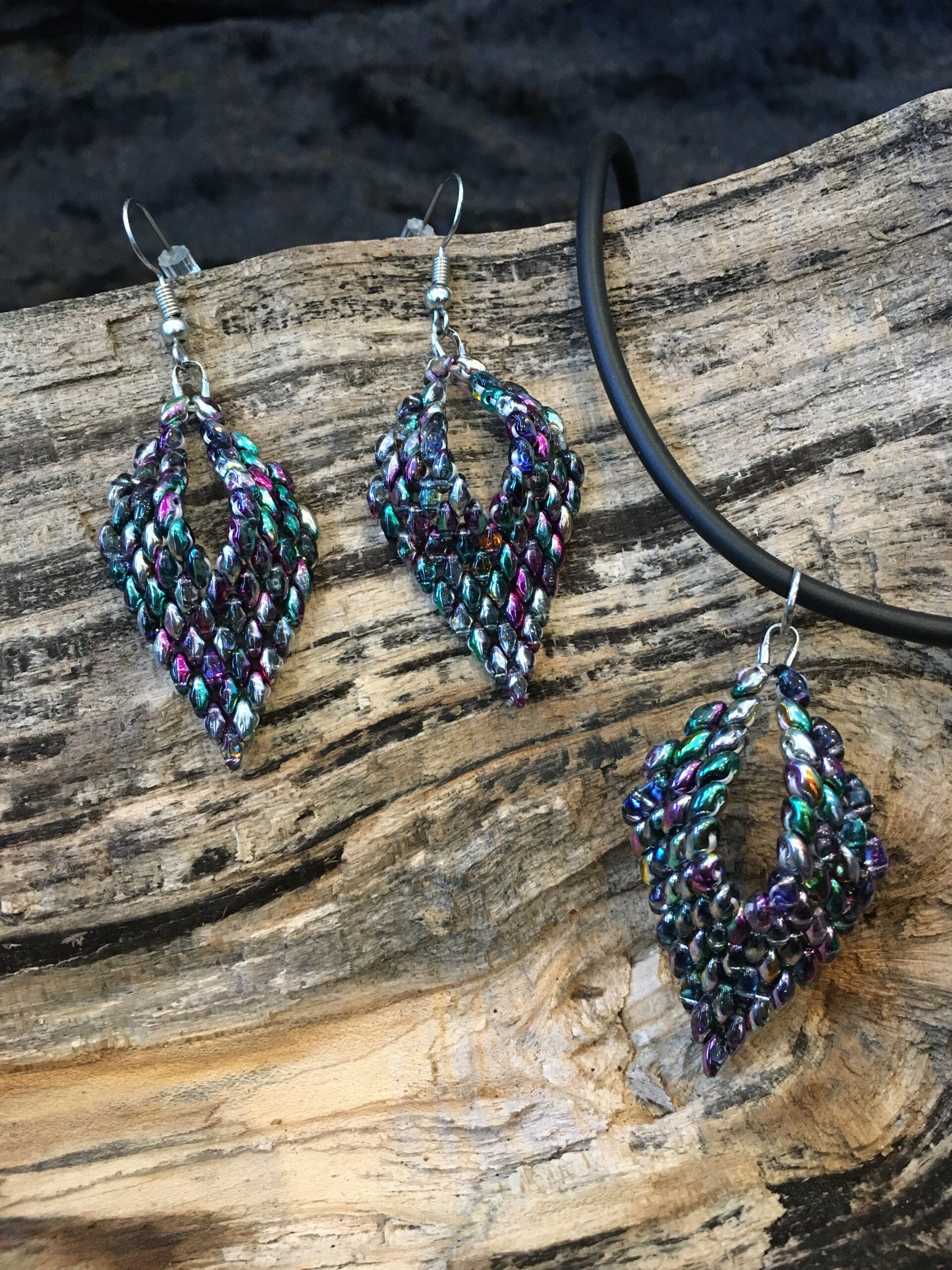 Handgemaakte sieradenset bestaande uit een ketting en oorbellen.