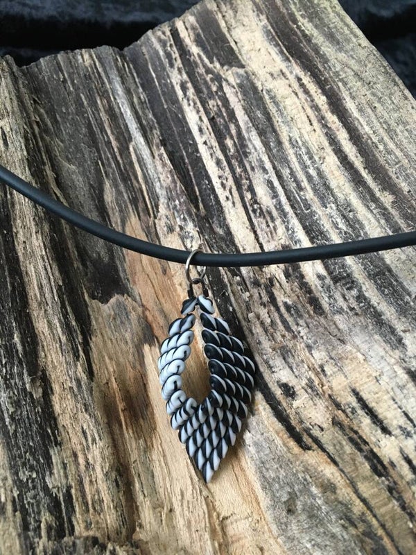 De ketting is van rubber en sluit met een klein magneetslot.