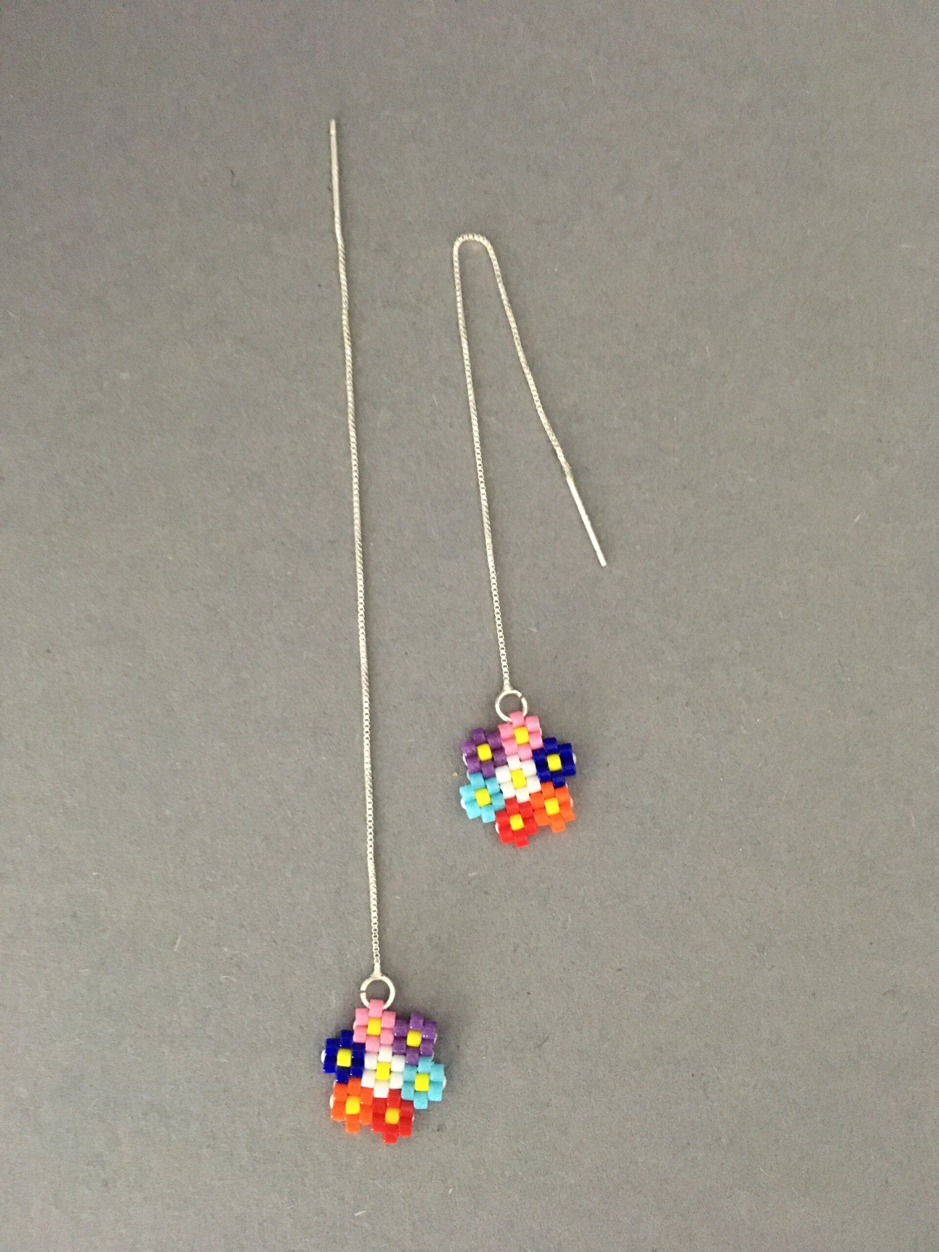 Handgemaakt boeket van kleine glaskraaltjes aan een sterling zilveren kettinkje met steker.
